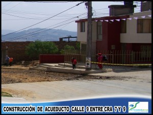 En el barrio Primero de Mayo se realizó la construcción de una nueva red de acueducto de agua potable de 2” pulgadas de diámetro, para el reforzamiento del abastecimiento de la urbanización La Esperanza, la cual consta alrededor de 150 metros de 2” pulgadas, se instalaron dos válvulas tipo cortinas en la dirección comprendida entre la Calle 4ª Oeste y la carrera 16 hasta la carrera 13. Con esta nueva red se espera beneficiar 60 familias, el estado de la Obra va en un 95% de ejecución.
