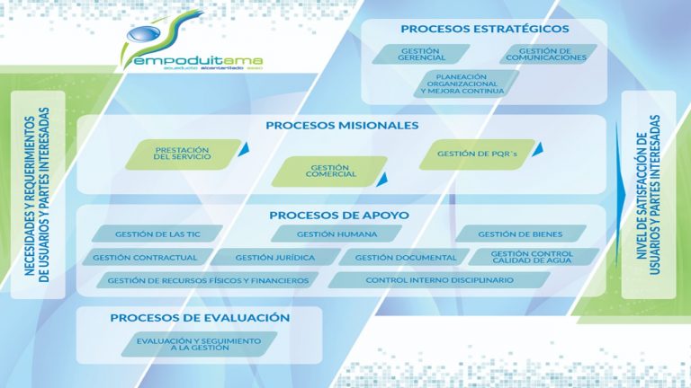 EMPODUITAMA S.A. E.S.P. ha diseñado un sistema de gestión por procesos sobre el que soporta la operación de la entidad, los cuales en su interacción, interdependencia y relación causa – efecto garantizan una ejecución eficiente, y el cumplimiento de los objetivos que le han sido asignados como entidad pública.